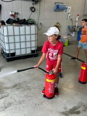 Im Anschluss gab es für die KollegInnen vom Roten Kreuz noch die Möglichkeit, einen Feuerlöscher zu bedienen.